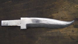 Wir hatten also eine Vorbereitung - gefaltet wurde somit nicht. Eine weitere Hilfe war das Ausschmieden mit dem Federhammer, bei meinem Schwert habe ich den Lufthammer benutzt - beide Maschinen haben unterschiedliche Arbeitsweisen, die auf ihren Antrieb zurückzuführen sind, sowie die damit verbundenen Vor- und Nachteile. Der eine bevorzugt lieber das eine- und der andere das andere Gerät zum Ausschmieden. Das Anbringen der Griffschalen hat ein Kollege vorgenommen, der ausschließlich Pistolengriffe fertigt, daher das eigenwillige Design - mit einer wunderschönen Fassung, wie ich finde!